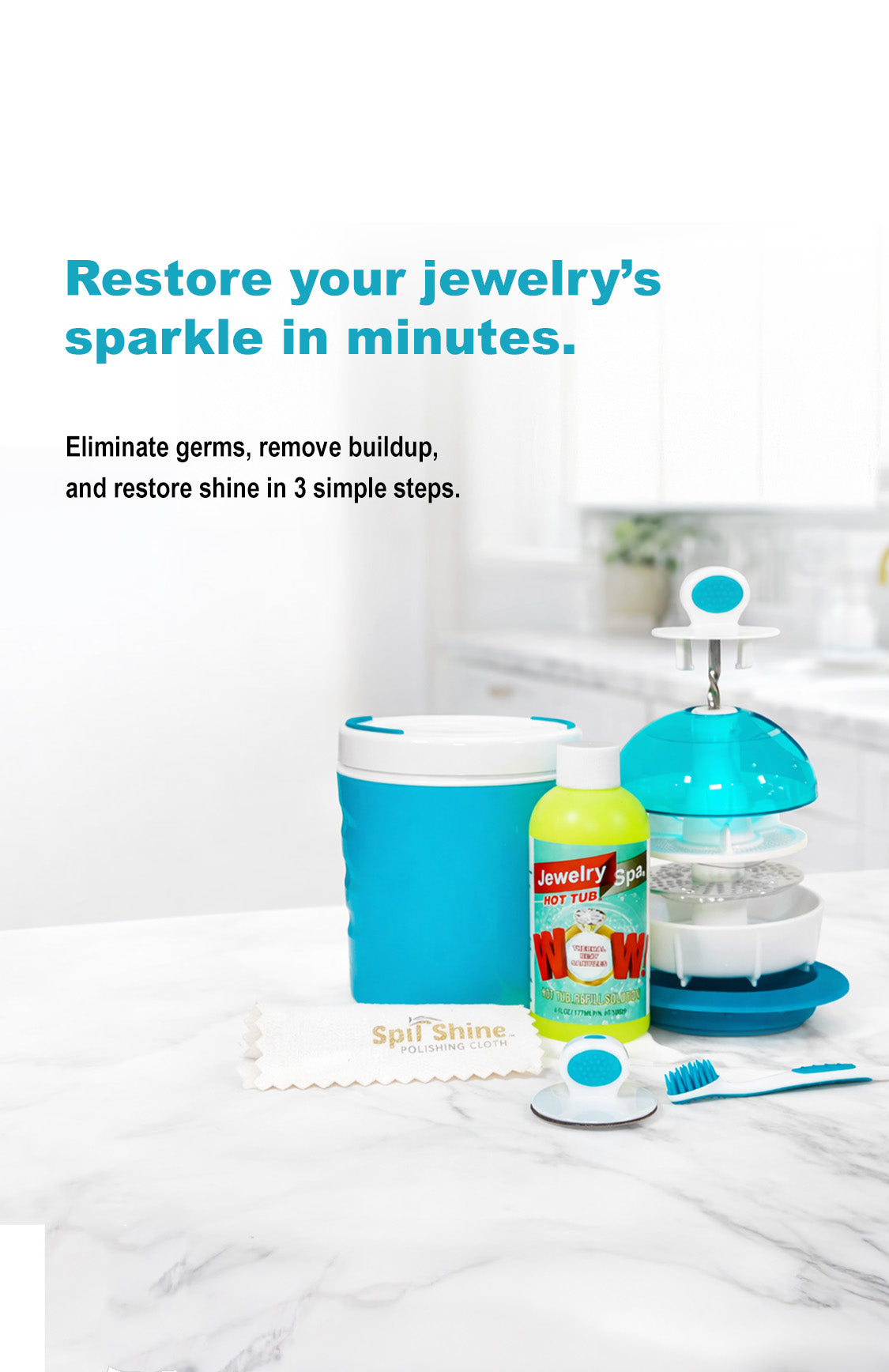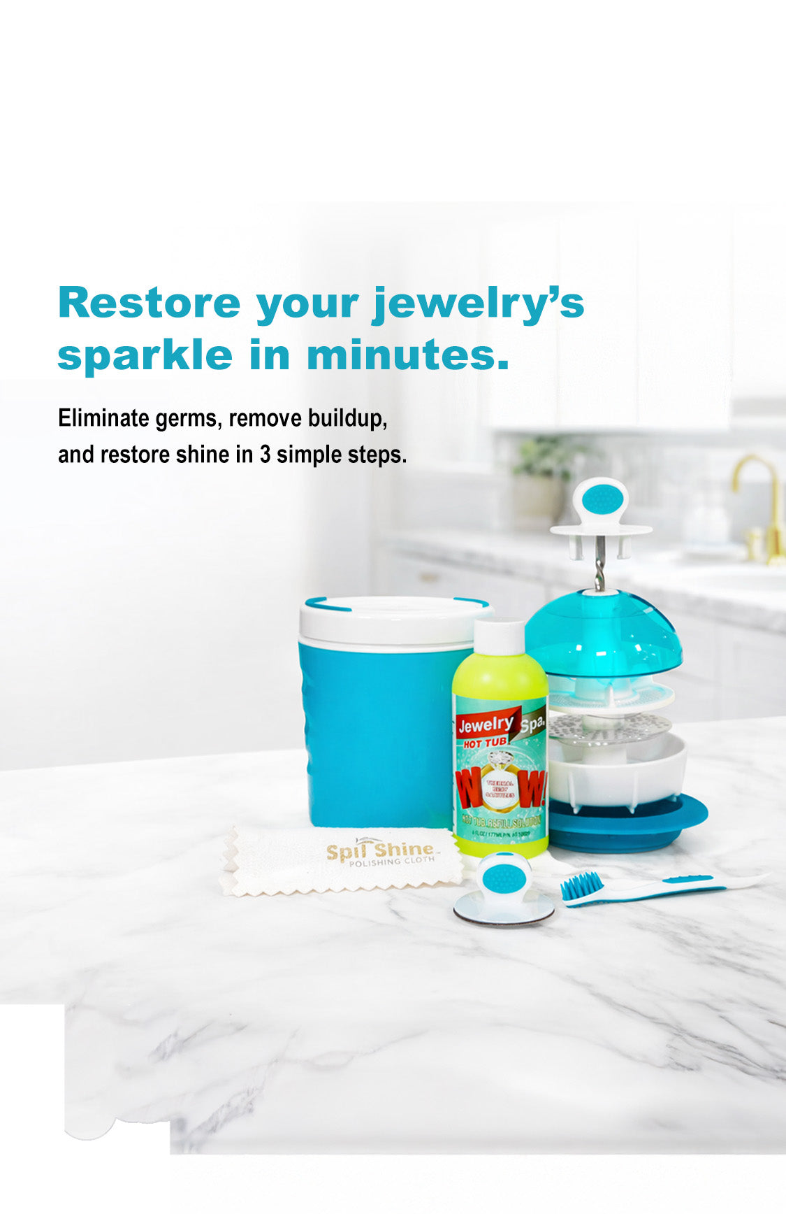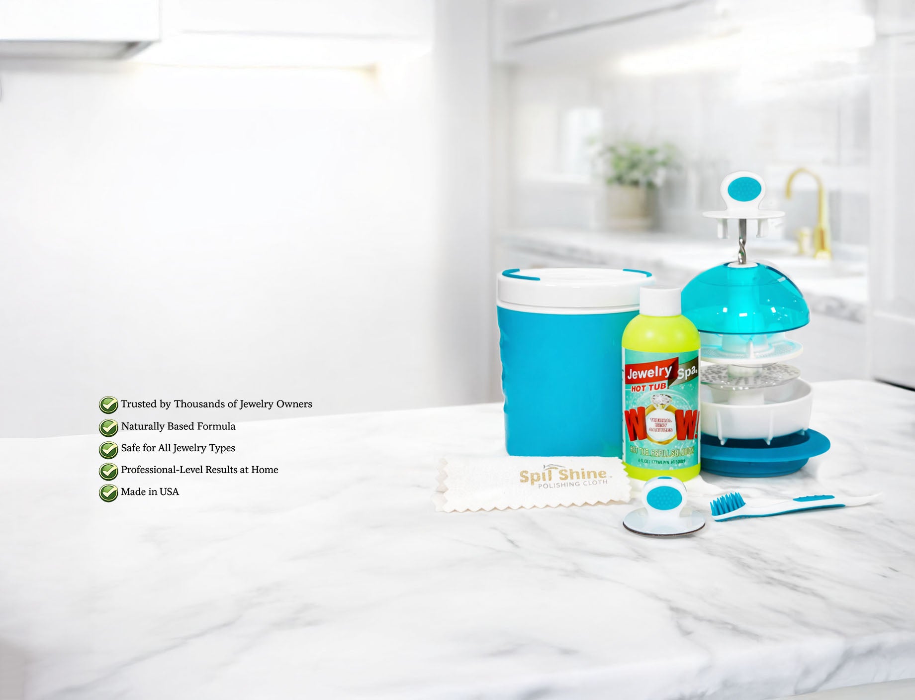 Jewelry Spa Hot Tub Cleaning Kit - Naturally-Based Cleaner That Removes Tarnish, Germs, Odor